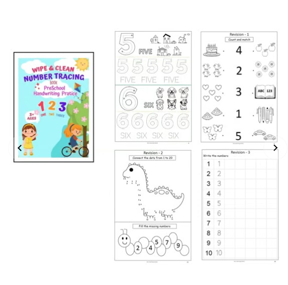 Ignite your child's love for learning with our vibrant wipe & clean number tracing book! Specially designed for preschoolers ages 3 and up, this engaging workbook features easy-to-follow tracing activities for numbers one, two, and three. Each page bursts with playful, colorful illustrations to keep little learners entertained while they practice their handwriting skills. With a reusable, wipeable surface, kids can trace again and again for endless learning and fun. Compact and perfectly sized for small hands (8.5 x 11 inches), this activity book is ideal for home or travel. Add it to your child’s learning toolkit and watch their confidence grow with every page!